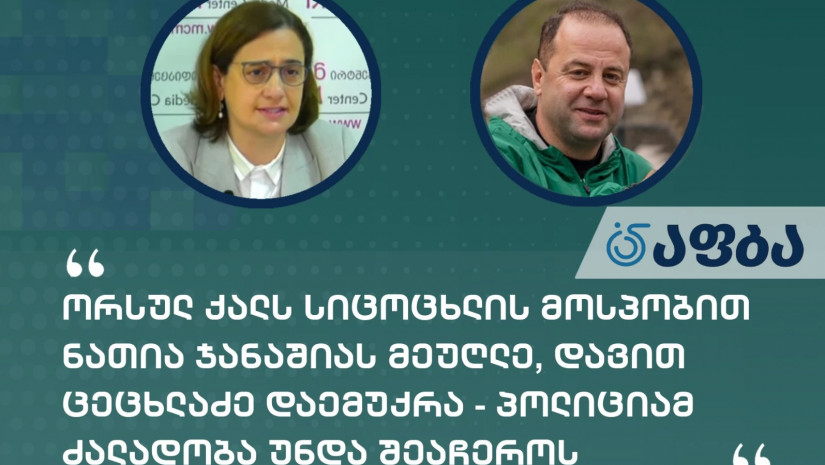 „ბრიტანულ-ქართული აკადემიის დავის მონიტორინგის პროცესში გავრცელებული საგამოძიებო მასალების გამო, ჩვენი ორგანიზაცია და მისი ანალიტიკოსები არაერთხელ გამხდარან ნათია ჯანაშიას და მის მეუღლის, დავით ცეცხლაძის მხრიდან შეურაცხყოფისა და ცილისწამების ობიექტები, მაგრამ ამ ხულიგნურ გამოხტომებს ძირითად შემთხვევებში უკომენტაროდ ვტოვებთ.ძალადობის ამ ამაზრზენ შემთხვევას კი ვერ დავტოვებთ ვერც რეაგირების გარეშე და საგანგებოდ გვინდა განვაცხადოთ, რომ ძალადობა ქალზე და, მითუმეტეს, ძალადობა ორსულზე, პირდაპირ მიუთითებს თავდამსხმელის მორალურ და მენტალურ მდგომარეობასა და კრიმინალურ პოზიციაზე. მნიშვნელოვანია, რომ პოლიციამ მყისიერად მოახდინა რეაქცია და სისხლის სამართლის საქმე უკვე აღიძრა, რაც დამატებითი ბარიერია ნათია ჯანაშიას მეუღლის, დავით ცეცხლაძის მოსალოდნელი კრიმინალური საქციელის სამომავლოდ განმეორებისთვის. ძალადობა სათავეშივე უნდა აღიკვეთოს“, – განცხადა გიორგი კაპანაძემ.აფბას ინფორმციით, საქმე ეხება ბრიტანულ-ქართული აკადემიის რიგგარეშე აქციონერთა კრებას, სადაც განიხილებოდა აკადემიის ახალ სამეწარმეო კანონთან სარეგისტრაციო მონაცემების შესაბამისობაში მოყვანისა და სააქციო კაპიტალში 70%-იანი აქციონერის, „საქართველოს განათლების ჯგუფის“ მფლობელობაში მყოფი ოქროყანაში განლაგებული მიწის ნაკვეთის შეტანის საკითხები.ინფორმაცია კრების ჩატარების შესახებ თავად ნათია ჯანაშიამ გაახმაურა, თუმცა, მხოლოდ იურიდიულ საკითხებზე გაამახვილა ყურადღება და კრიმინალურ ინციდენტზე არაფერი უთქვამს.„საქართველოს განათლების ჯგუფის“ დღეს გავრცელებულ განცხადებაში ნათქვამია: „კრებაზე ნათია ჯანაშიასა და მისი მეუღლის, დავით ცეცხლაძის მხრიდან არასათანადო ქცევასთან ერთად დაფიქსირდა „საქართველოს განათლების ჯგუფის“ თანამშრომლების წინააღმდეგ შეურაცხყოფისა და მუქარის ფაქტები.კერძოდ, ნათია ჯანაშიას მეუღლე ,დავით ცეცხლაძე სიცოცხლის მოსპობით დაემუქრა „საქართველოს განათლების ჯგუფის“ თანამშრომლებს. მუქარის ფაქტზე პოლიციაში დაწყებულია გამოძიება სისხლის სამართლის კოდექსის 152-ე მუხლით – მუქარა სიცოცხლის მოსპობით ჯგუფურად, რაც, ბრალის დამტკიცების შემთხვევაში ისჯება თავისუფლების აღკვეთით ვადით სამ წლამდე“.