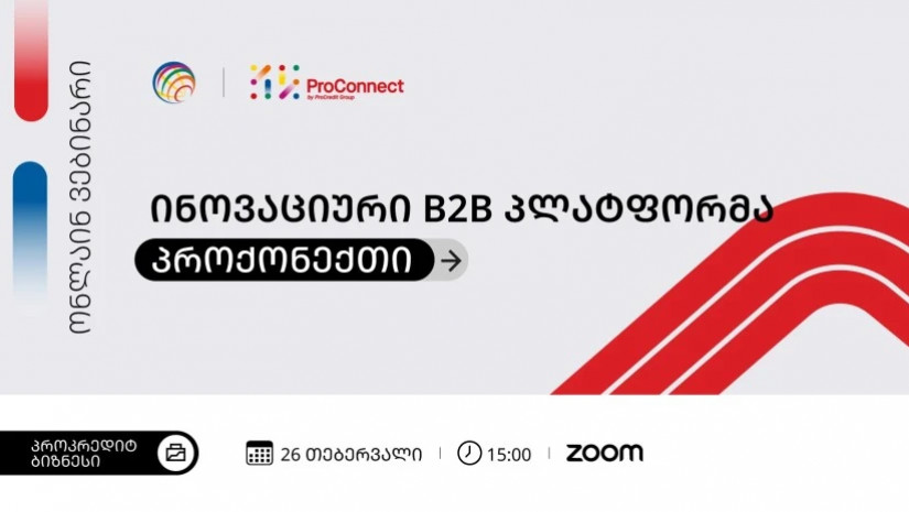 ProConnect პროკრედიტ ჯგუფის ინოვაციური ციფრული ბიზნეს ჰაბია, რომელიც კომპანიებს საერთაშორისო პარტნიორების, ახალი ბაზრებისა და ბიზნეს კავშირების მოძიებაში ეხმარება.ვებინარის ფარგლებში ბიზნესებს საშუალება ექნებათ მიიღონ დეტალური ინფორმაცია პლატფორმის უპირატესობებზე, გაეცნონ როგორ მუშაობს ProConnect პრაქტიკაში და როგორ შეიძლება მისი გამოყენება ბიზნესის ზრდისთვის.B2B პლატფორმა სულ რამდენიმე თვეა ოპერირებს და უკვე 3 000-ზე მეტ კომპანიას აერთიანებს პროკრედიტ ჯგუფის 12 ქვეყნიდან, ხოლო რეგისტრირებული ბიზნესების რაოდენობა ყოველდღიურად იზრდება.ვებინარზე დასასწრებად საჭიროა წინასწარი რეგისტრაცია ბმულზე.