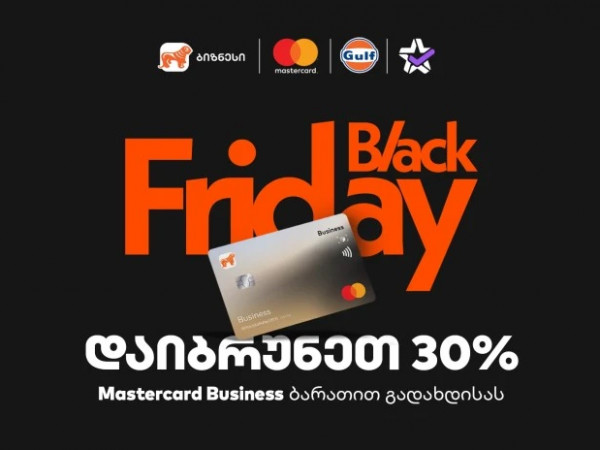 საწვავზე 30%-იანი ქეშბექი Gulf-ის ქსელშიMastercard Business Card-ის მფლობელებს შესაძლებლობა აქვთ, 28 ნოემბერს, Black Friday-ზე, Gulf-ის ქსელში საწვავის შეძენისას 30%-იანი ქეშბექი (მაქსიმუმ 100 ლარის ოდენობით) მიიღონ.ქეშბექის მისაღებად საჭიროა გადახდა განხორციელდეს საქართველოს ბანკის ტერმინალზე. ქეშბექი ანგარიშზე 2-3 სამუშაო დღეში დაბრუნდება.იხილეთ მეტი ინფორმაცია შეთავაზების შესახებ ამ ბმულზე.Extra.ge-ზე – ყველა პროდუქტზე 30%-იანი ქეშბექიMastercard Business ბარათით Extra.ge-ზე გადახდისას ბიზნესებს Black Friday-ზე, 28 ნოემბერს, 30%-იანი ქეშბექის (მაქსიმუმ 200 ლარამდე) მიღების შესაძლებლობა აქვთ. შეთავაზება Extra.ge-ის სრულ ასორტიმენტზე მოქმედებს.ქეშბექის მისაღებად საჭიროა საქართველოს ბანკის გადახდის მეთოდის არჩევა. ქეშბექი ანგარიშზე 2-3 სამუშაო დღეში დაბრუნდება.იხილეთ მეტი ინფორმაცია შეთავაზების შესახებ ამ ბმულზე.საქართველოს ბანკი, პარტნიორი ბიზნესების ჩართულობით, მეწარმეებისთვის მუდმივად ქმნის შეთავაზებებს. შეთავაზებები მოიცავს ფასდაკლებებს, ქეშბექებს თუ სპეციალურ პირობებს ტექნოლოგიურ, მარკეტინგულ, საბუღალტრო, ფინანსურ და სხვა სერვისებზე. ამ შეთავაზებების შესახებ სრული ინფორმაციის მისაღებად ეწვიეთ საქართველოს ბანკის ვებგვერდს.