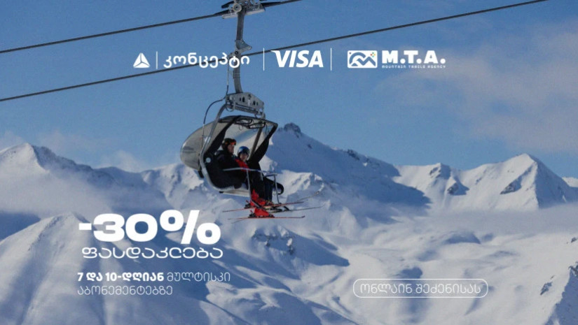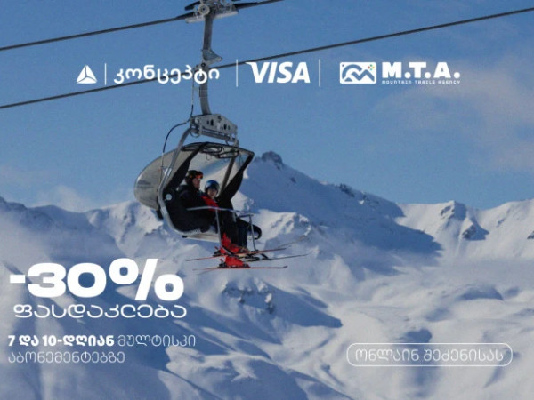 შეთავაზება ეხება ზრდასრულების აბონემენტებს და არ ვრცელდება მხოლოდ კონკრეტული კურორტის აბონემენტის შეძენისას. ფასდაკლებით სარგებლობისთვის, აბონემენტები უნდა შეიძინოთ ონლაინ პლატფორმებზე: SKIPASS.GE | TKT.GE | SuperApp | Biletebi.ge. ერთი ბარათით შესაძლებელია, მაქსიმუმ ორი ზრდასრულის აბონემენტის შეძენა.აბონემენტების რაოდენობა ლიმიტირებულია, ამიტომ შეძენის სურვილის შემთხვევაში, იჩქარეთ. შეთავაზებით სარგებლობისთვის, იხელმძღვანელეთ შერჩეულ ონლაინ პლატფორმებზე (SKIPASS.GE | TKT.GE | SuperApp | Biletebi.ge) მითითებული ფასდაკლების მიღების მექანიკით.შეთავაზების დეტალური პირობების სანახავად, ეწვიეთ ბმულს.გახდით თიბისი კონცეპტის მომხმარებელი და ისარგებლეთ პრივილეგირებული საბანკო მომსახურებითა და შეთავაზებებით.