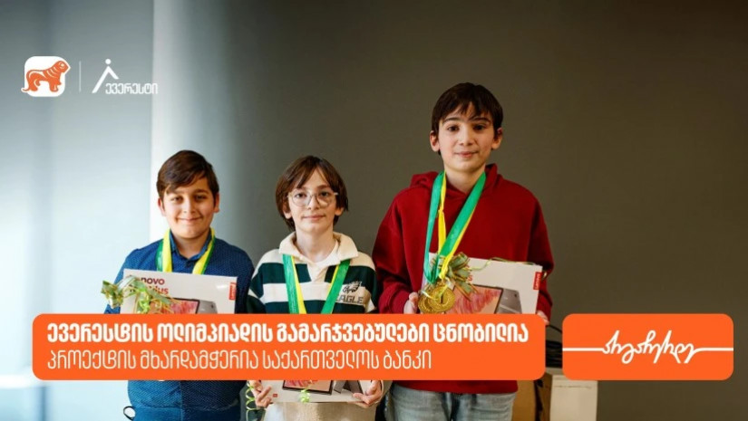 წელს გამარჯვებულები გახდნენ: იოანე მამრიკიშვილი, თბილისის 60-ე სკოლის VI კლასის მოსწავლე; საბა ჯაფარიძე, თბილისის 168-ე სკოლის V კლასის მოსწავლე; დამიანე მამრიკიშვილი, თბილისის 60-ე სკოლის IV კლასის მოსწავლე; ოლიმპიადის გამარჯვებულებს საქართველოს ბანკისგან გადაეცათ სპეციალური პრიზი - პლანშეტები.ინფორმაციისთვის, წელს ევერესტის მათემატიკის ოლიმპიადაზე 15 000-ზე მეტი მონაწილე დარეგისტრირდა, ტესტი კი II, III, IV, V და VI კლასის 12 000-ზე მეტმა მოსწავლემ წერა.ახალგაზრდების მხარდაჭერის მიზნით, საქართველოს ბანკის CSR მიმართულებისთვის უკვე 5 წელზე მეტია განათლება პრიორიტეტია. სწორედ ამიტომ, ბანკი 40-ზე მეტ საგანმანათლებლო პროექტს ახორციელებს და უჭერს მხარს, რითაც 500 000-ზე მეტი მოსწავლისთვის, სტუდენტისა და ახალგაზრდა პროფესიონალისთვის ქმნის განათლების შესაძლებლობას. ბანკის CSR მიმართულების პორტფელი მოიცავს ისეთ საგანმანათლებლო პროექტებს, როგორებიც არის: საქართველოს ბანკის სტიპენდიები; გიორგი ჩახავას სახელობის სტიპენდია; დიდ ბრიტანეთში, აშშ-სა და გერმანიაში სწავლის სრული დაფინანსება; იდეათეკები – საქართველოს ბანკის ბიბლიოთეკების პროექტი; საქართველოს ბანკისა და კომაროვის ერთობლივი პროექტი – STEM სკოლა; საქართველოს ბანკის ოლიმპიადები მოსწავლეებისთვის: STEM ოლიმპიადა, ეკონომიკის ოლიმპიადა, Kings-ის ფინანსური განათლების ოლიმპიადა, ევერესტი. ამასთან, საჯარო მეტყველების კონკურსი, და სხვა.საქართველოს ბანკის მიერ განხორციელებული საგანმანათლებლო პროექტების შესახებ დეტალური ინფორმაციის მისაღებად ეწვიეთ ვებგვერდს ganatleba.bog.ge