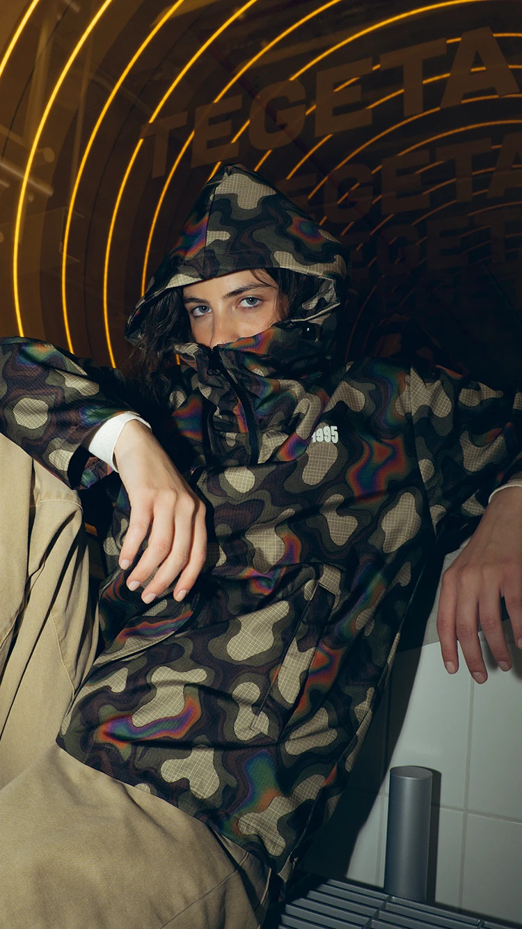 ავტომობილიდან დაღვრილი ზეთის ზედაპირზე წარმოქმნილი ანარეკლი, როგორც ინსპირაცია - ერთი შეხედვით, ჩვეულებრივი ინდუსტრიული დეტალი „თეგეტა ჰოლდინგის“ მარტის კამპანიის ერთ-ერთ მატერიალურ სიმბოლოდ იქცა. ზეთი და წყალი ერთმანეთს არ ერწყმის, თუმცა მათი შეხებისას ზედაპირზე ყველაზე მოულოდნელი და მრავალფეროვანი ფერები ჩნდება. ამ იდეას ეფუძნება საჩუქარი „თეგეტას“ თანამშრომელი ქალებისათვის, რომელიც ჰოლდინგის მარტის კამპანიის ფარგლებში დამზადდა. კამუფლაჟის სტილის ქურთუკი Reckless-თან კოლაბორაციით შეიქმნა.