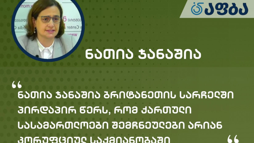 აფბას ხელმძღვანელს ნათია ჯანაშიას მიერ ლონდონის სასამართლოში შეტანილი სარჩელიდან კონკრეტული ამონარიდები მოჰყავს მაგალითად. კერძოდ, შემდეგი ციტატა: